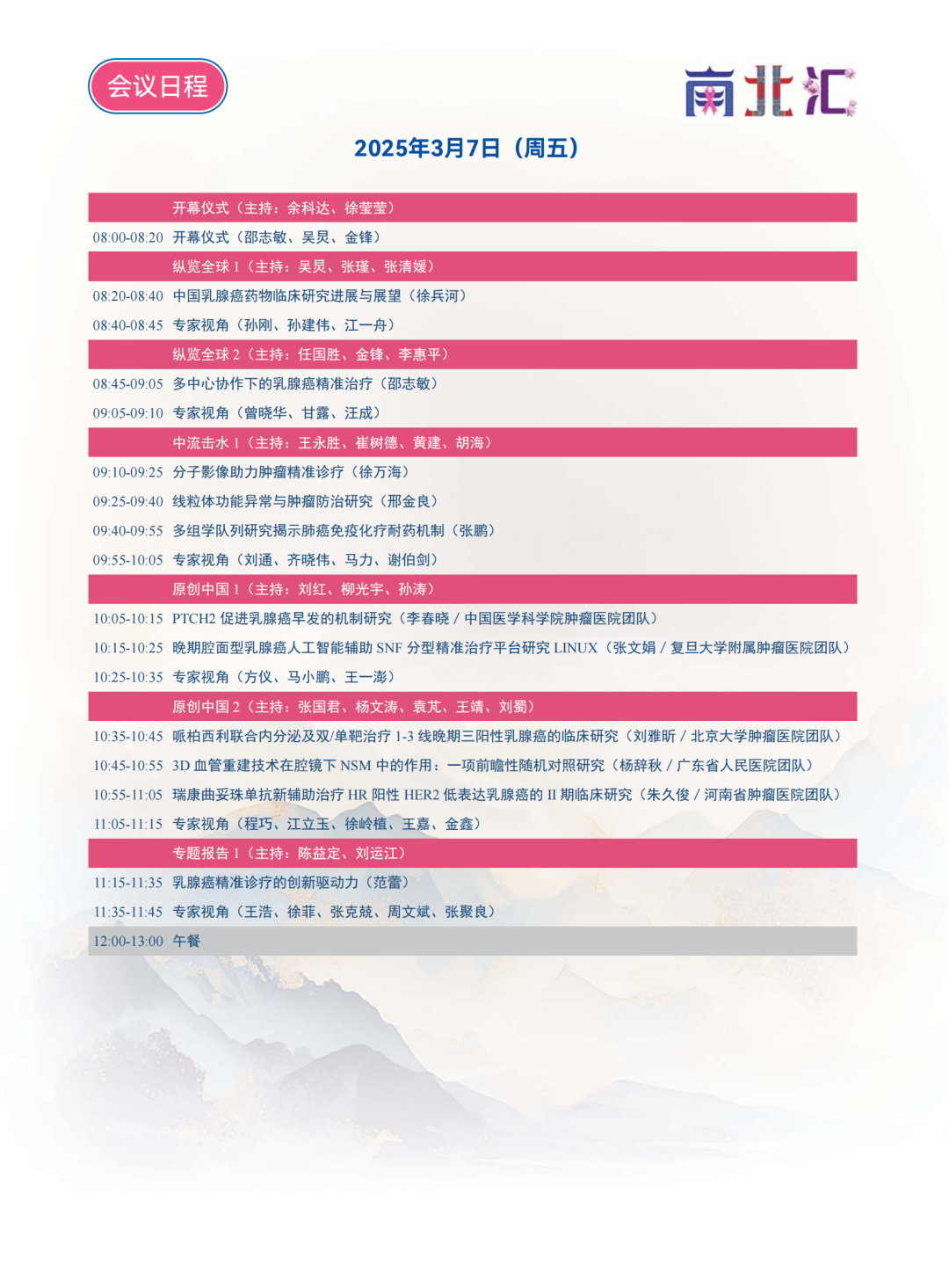 肿瘤瞭望:2025年南北汇-第七届乳腺肿瘤论坛即将召开,非常荣幸能够邀请到二位执行主席对会议相关内容进行介绍。首先,请二位主席向我们介绍下本次论坛的基本情况和会议亮点内容。
