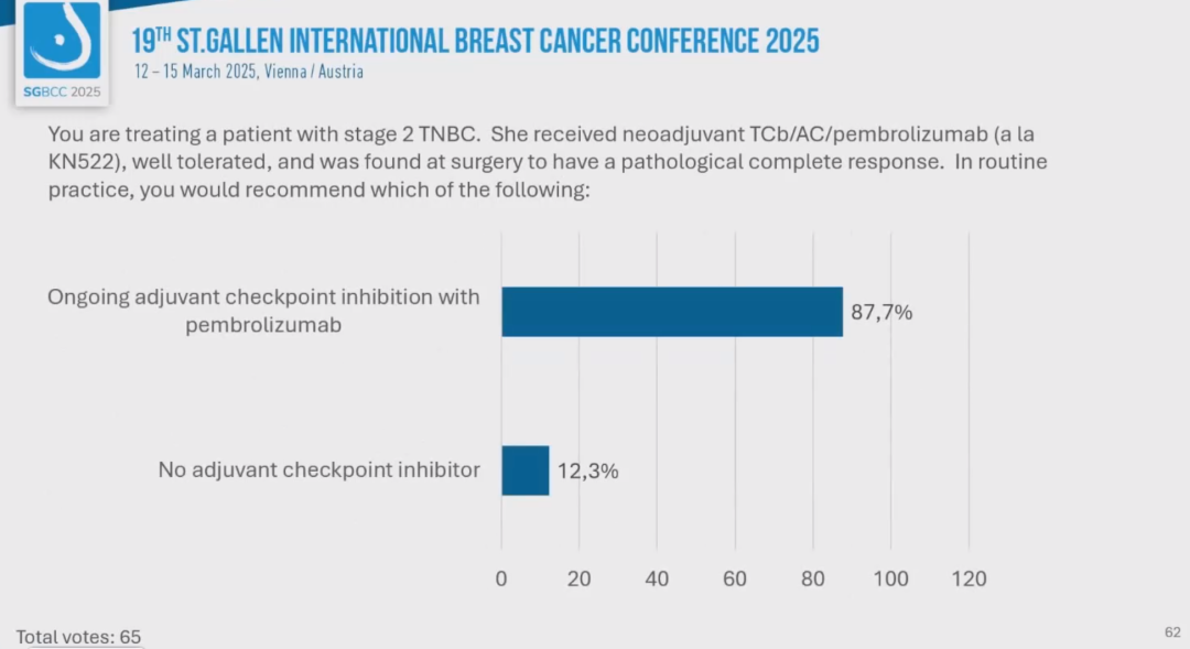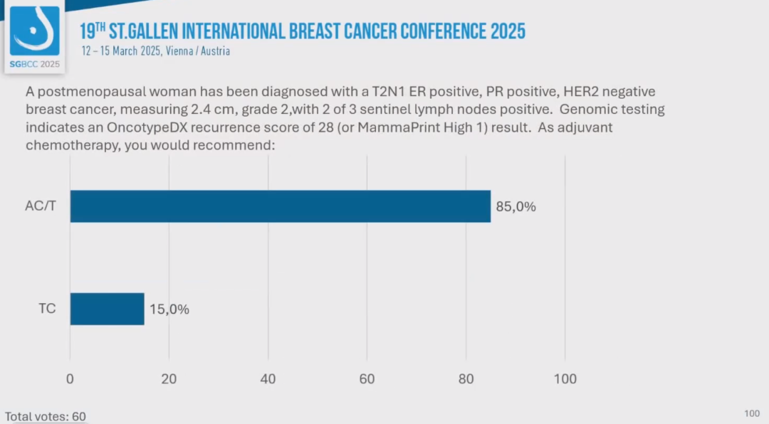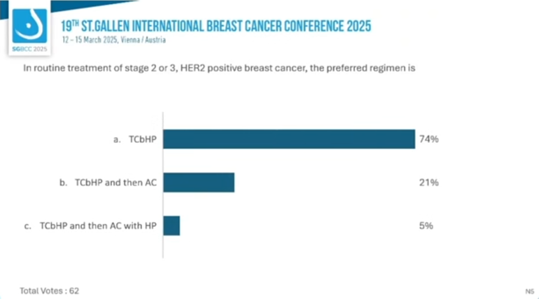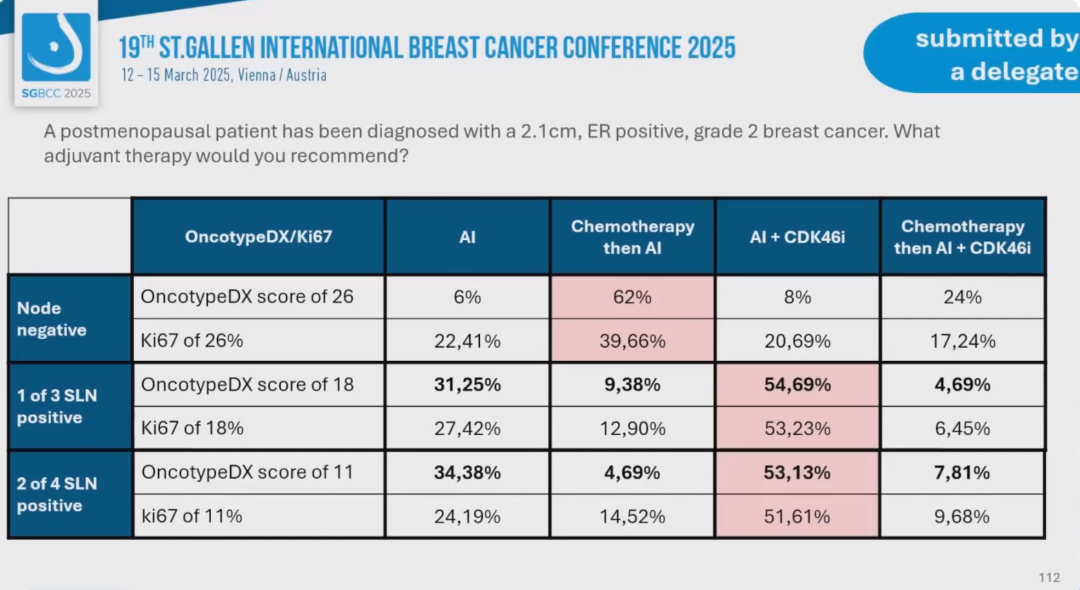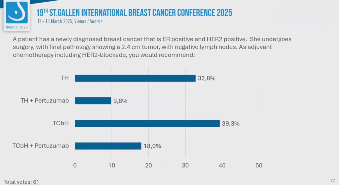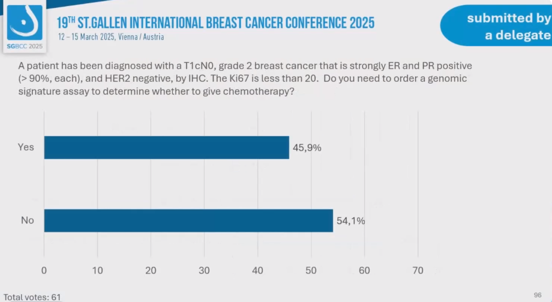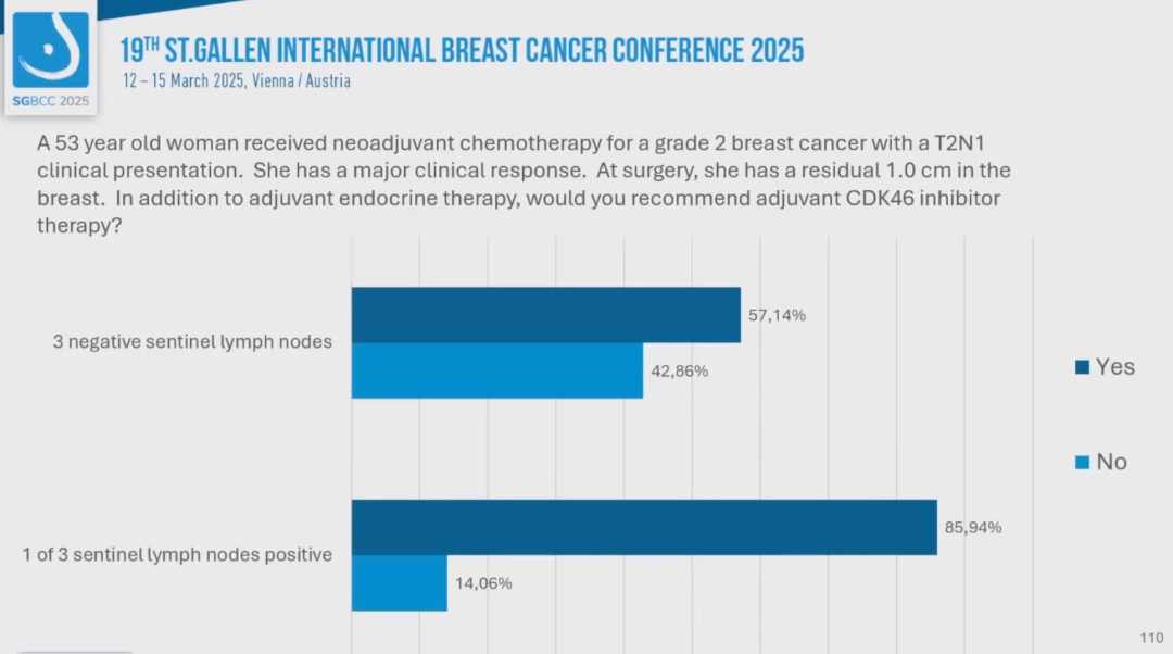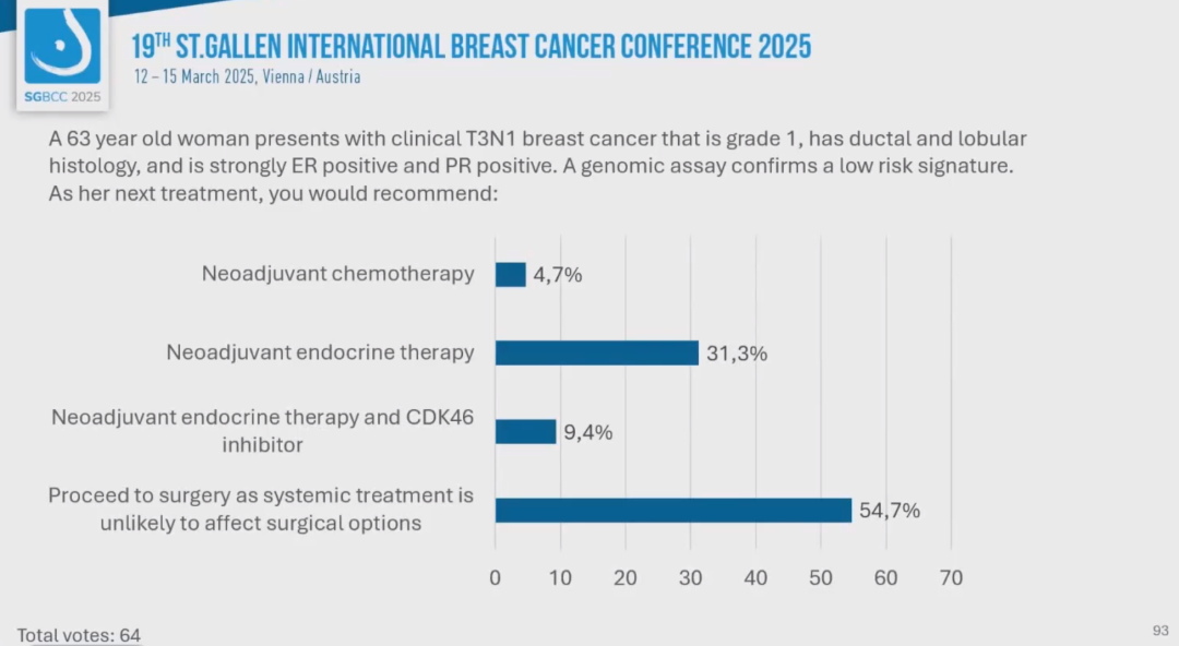 编者按:第19届St.Gallen国际乳腺癌大会(SGBCC 2025)于当地时间2025年3月12~15日在音乐之都维也纳举行。大会的最后一天,专家投票压轴登场。《肿瘤瞭望》整理了包括三阴性乳腺癌、HER2阳性乳腺癌、激素受体阳性乳腺癌在内的系统治疗专家投票,现成文如下,与大家一起感受早期乳腺癌治疗决策的圣加伦氛围。