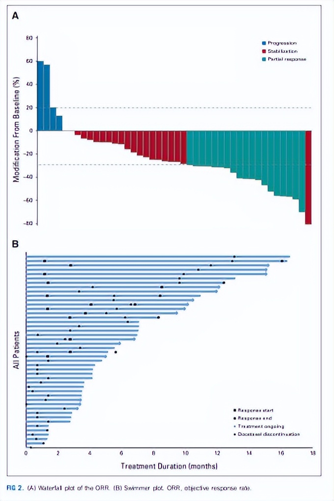 研究共纳入105例患者,51%的患者为非小细胞肺癌,55%的患者携带HER-2突突变,17%携带HER-2重排,中位治疗线数为4线。2例患者出现剂量限制性毒性,分别是在240mg,口服,每日一次剂量组出现一例3度腹泻和360mg,口服,每日一次剂量组出现一例3度血小板数量下降。3度以上治疗相关不良反应发生率为10%,包括谷丙转氨酶升高4%,谷草转氨酶升高2%,皮疹2%。严重不良反应发生率为37%。ORR和DCR分别为30%和83%。中位DOR为12.7个月,中位PFS为8.0个月。在非小细胞肺癌患者中,ORR和DCR分别为35%和93%,中位DOR未达到,中位PFS为8.7个月。