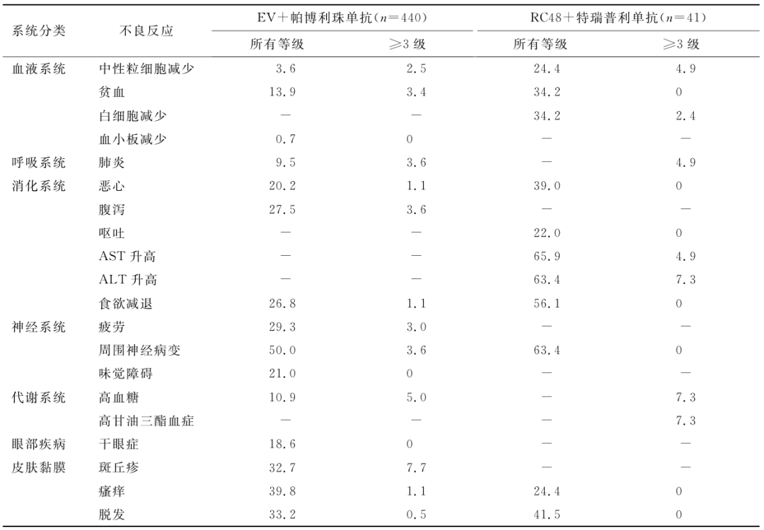 表4 ADC联合免疫检查点抑制剂的不良反应种类及发生率