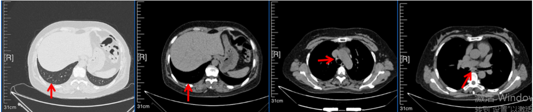56岁,女性,无吸烟史饮酒史,既往体健。2023年02月患者体检发现肺占位性病变,胸部增强CT:右肺下叶后基底段结节;右侧锁骨上及纵隔内多发淋巴结肿大。PET-CT:右肺下叶周围型肺癌可能性大;1R、2L、3P、4R、4L及7组淋巴结转移可能性大。2023年02月就诊于本院胸外科行超声胃镜下纵隔肿物穿刺活检术,病理:结合免疫组化,符合肺腺癌。行NGS基因检测:EML4:exon20-ALK:exon20融合。PD-L1(克隆号22C3)TPS=55%。