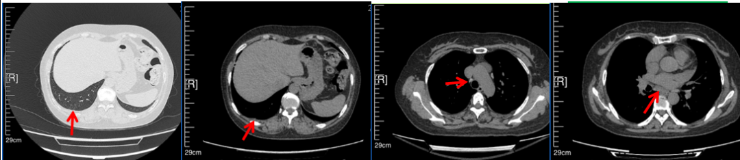 治疗经过:2023年3月27日始行恩沙替尼靶向治疗至今,最佳疗效为PR,末次评效为维持PR。期间出现轻度肝功能异常(DILI 1级),对症处理后好转。截止目前PFS为26个月。