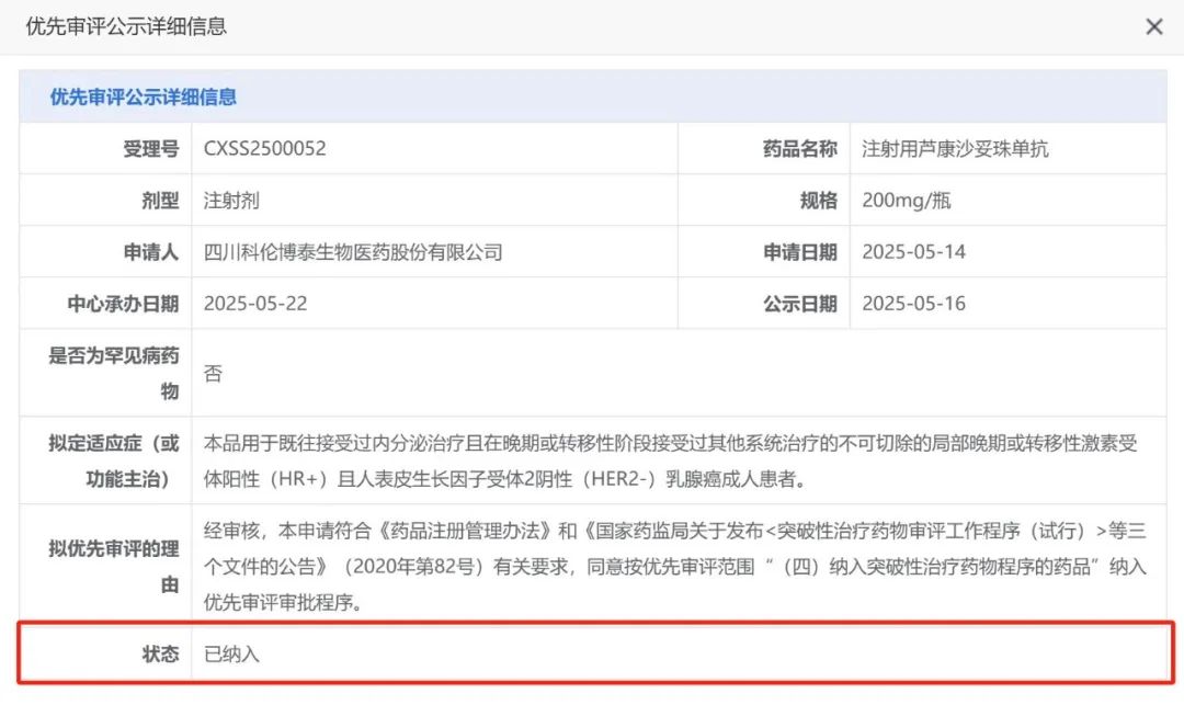 近年来,靶向于TROP2的新型抗体偶联药物(ADC)在HER2阴性晚期乳腺癌(HER2-mBC)领域展现了巨大的应用潜力,我国自主研发的TROP2 ADC芦康沙妥珠单抗(Sacituzumab tirumotecan;sac-TMT,亦称SKB264/MK-2870)一路高歌猛进,成为首个获批治疗乳腺癌的国产TROP2 ADC。在获批晚期三阴性乳腺癌(TNBC)相关适应症后,近日,中国国家药品监督管理局(NMPA)药品审评中心(CDE)正式受理了芦康沙妥珠单抗治疗HR+/HER2-mBC相关适应症的新药上市申请(NDA),拟用于既往接受过内分泌治疗且在晚期或转移性阶段接受过其他系统治疗的不可切除的局部晚期或转移性HR+/HER2-乳腺癌成人患者,且被纳入优先审评,有望进一步改变我国乳腺癌的临床实践。