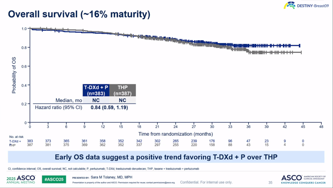 《肿瘤瞭望》:目前DESTINY-Breast09研究的OS数据尚未成熟,但PFS2结果已经显示了显著的获益,请问您如何看待T-DXd+P方案对患者长期预后的影响?