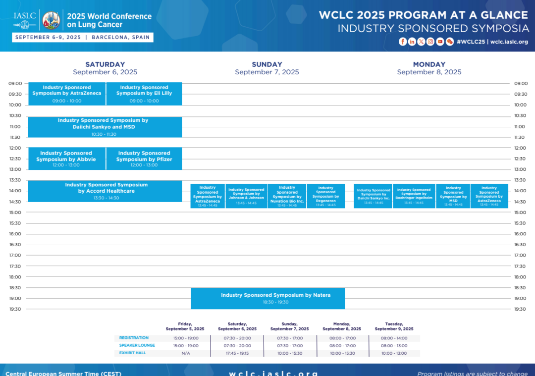 由国际肺癌研究协会(IASLC)主办的2025年世界肺癌大会(WCLC 2025)将于2025年9月6日至9日在西班牙巴塞罗那举行。作为肺癌及其他胸部恶性肿瘤领域全球领先的多学科肿瘤学盛会,WCLC致力于传递该领域最前沿的诊疗进展,为世界各地的专家学者及研究者提供分享前沿研究成果、促进合作交流的平台。
