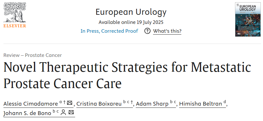 Cimadamore A,Boixareu C,Sharp A,et al.Novel Therapeutic Strategies for Metastatic Prostate Cancer Care[J].European Urology,2025.