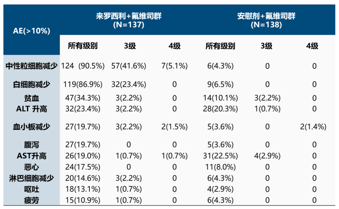 再者,来罗西利的安全性优势非常突出,尤其是血液学毒性低,4级中性粒细胞减少仅为5%,≥3级的腹泻几乎没有发生,并且没有发生ILD、VTE、QT延长等特殊不良事件。这些安全性优势使得来罗西利非常适合作为晚期患者的长期维持治疗方案,而且能够减少剂量调整或停药的情况发生,使治疗获益最大化;同时也能够节省患者治疗过程中对不良事件的监测管理成本。