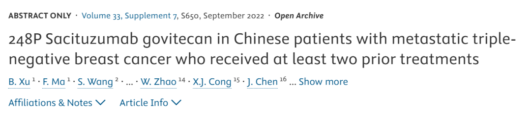 [8]Xu B,et al.2022ESMO 248P-Sacituzumab govitecan in Chinese patients with metastatic triple-negative breast cancer who received at least two prior treatments.Annals of Oncology(2022)33(suppl_7):S88-S121.10.1016/annonc/annonc1040