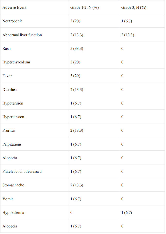 研究主要成果主要包括如下两方面:一方面,我们采用的DAB三联方案(维迪西妥单抗、卡度尼利单抗、贝伐珠单抗)在研究的第一个阶段尚未完成时,在13例可评估患者中就已观察到足够数量的客观缓解,提前达到了预设的有效性终点,这令所有参研单位和研究者感到意外和欣喜。另一方面,第一例患者入组至今,用药时间已近一年,表明该方案具有良好的耐受性。因此,DAB方案的有效性被提前证实,其安全性也非常确定,值得在三期临床研究中进一步验证。