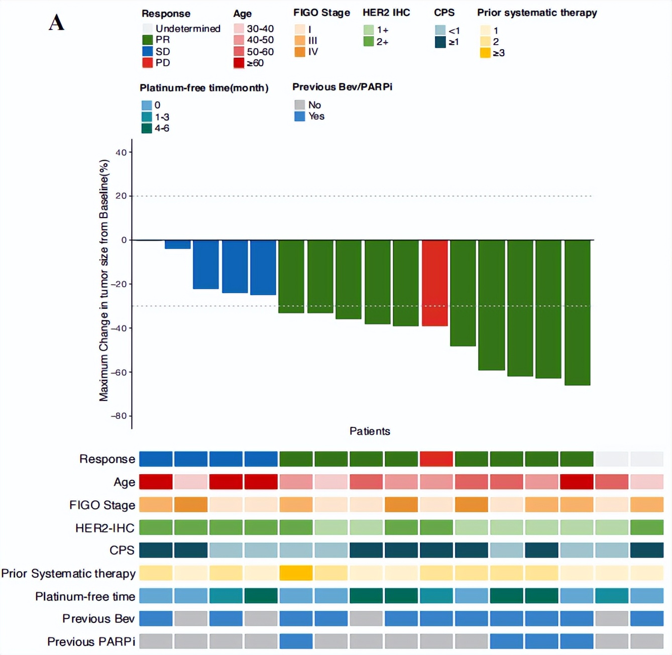 虽然本研究未入组HER2 IHC 3+的患者,但我们发现,无论是HER2表达IHC 1+还是IHC 2+的患者,在接受DAB三联方案治疗后都取得了良好疗效。这提示即使是HER2低表达(IHC 1+)的OCCC患者,只要联合方案合理,同样能获益。