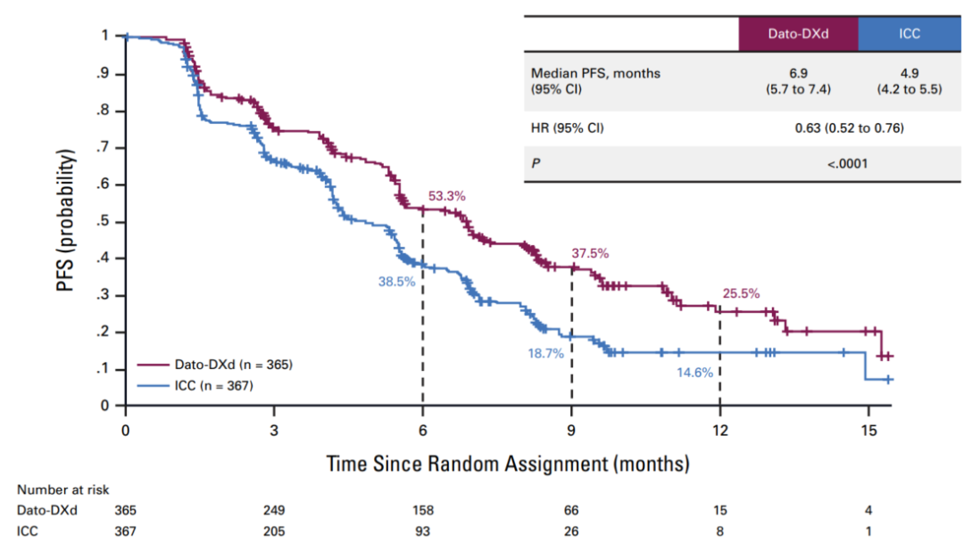 [10]Bardia A,Jhaveri K,Im SA,et al.Datopotamab Deruxtecan Versus Chemotherapy in Previously Treated Inoperable/Metastatic Hormone Receptor-Positive Human Epidermal Growth Factor Receptor 2-Negative Breast Cancer:Primary Results From TROPION-Breast01.J Clin Oncol.2025;43(3):285-296.doi:10.1200/JCO.24.00920