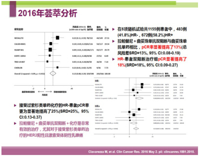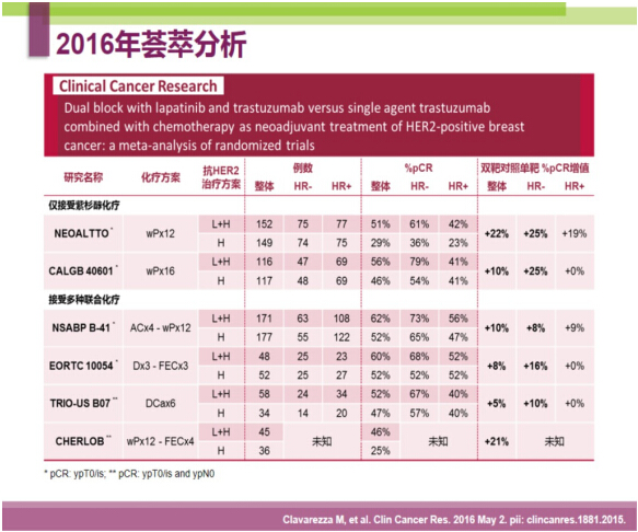 图3. 曲妥珠单抗联合拉帕替尼双靶向联合化疗新辅助治疗研究汇总