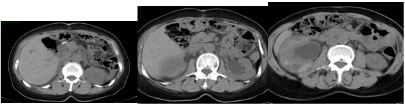 图3 2015年1月9日,三疗程DCF方案化疗后的腹部CT