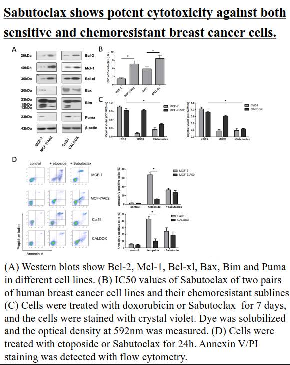泛Bcl-2家族抑制剂Sabutoclax逆转乳腺癌化疗耐药并杀伤肿瘤干细胞的机制研究