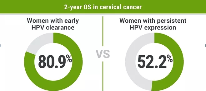 宫颈癌治疗后早期清除HPV与提高宫颈癌妇女的生存率相关。
