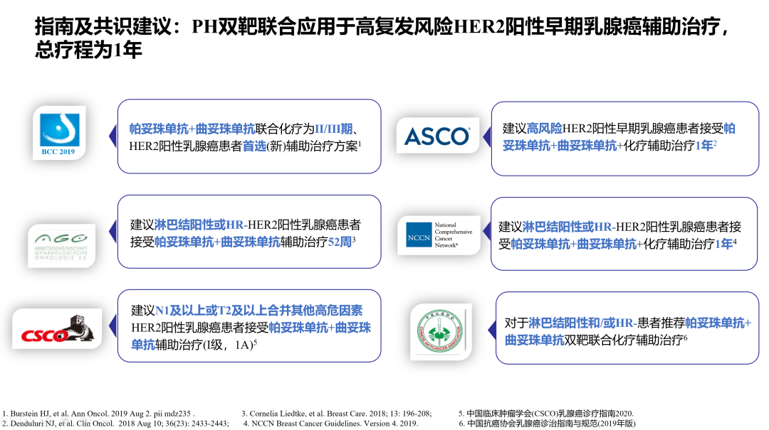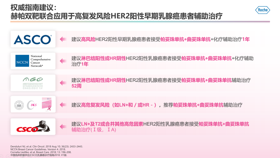 因此,2019年St. Gallen共识明确了临床II期和III期患者优选赫帕双靶方案,且国内外指南如ASCO、NCCN、CSCO等均推荐赫帕双靶可应用于高复发风险HER2阳性eBC患者辅助治疗,为抗HER2治疗升阶提供了最强支持。随着赫帕双靶在中国进入医保,实现更广泛的可及,未来的升阶之路,需要更好的筛选适合的患者人群。