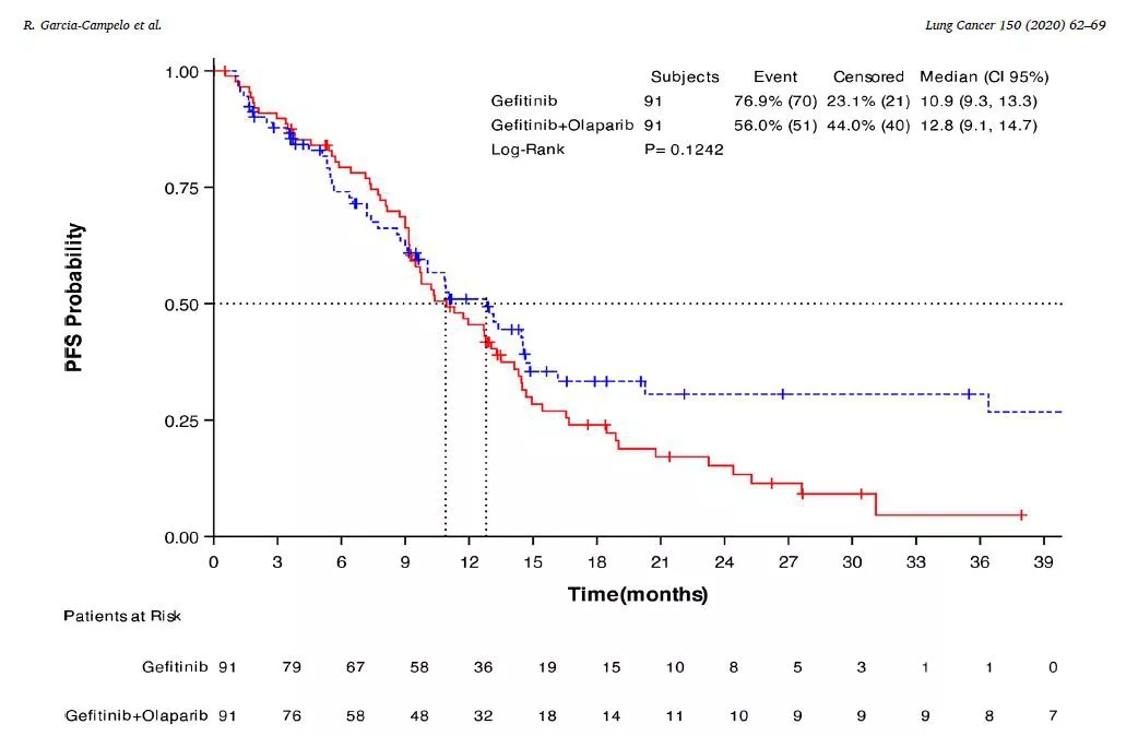 在Ib期临床研究中,我们已经确认了吉非替尼联合奥拉帕利是安全的,且两者之间不存在相互作用。后期的推荐剂量为吉非替尼250 mg,口服,每日一次,联合奥拉帕利200 mg,口服,每日三次。本文旨在报道研究的Part2部分结果。
