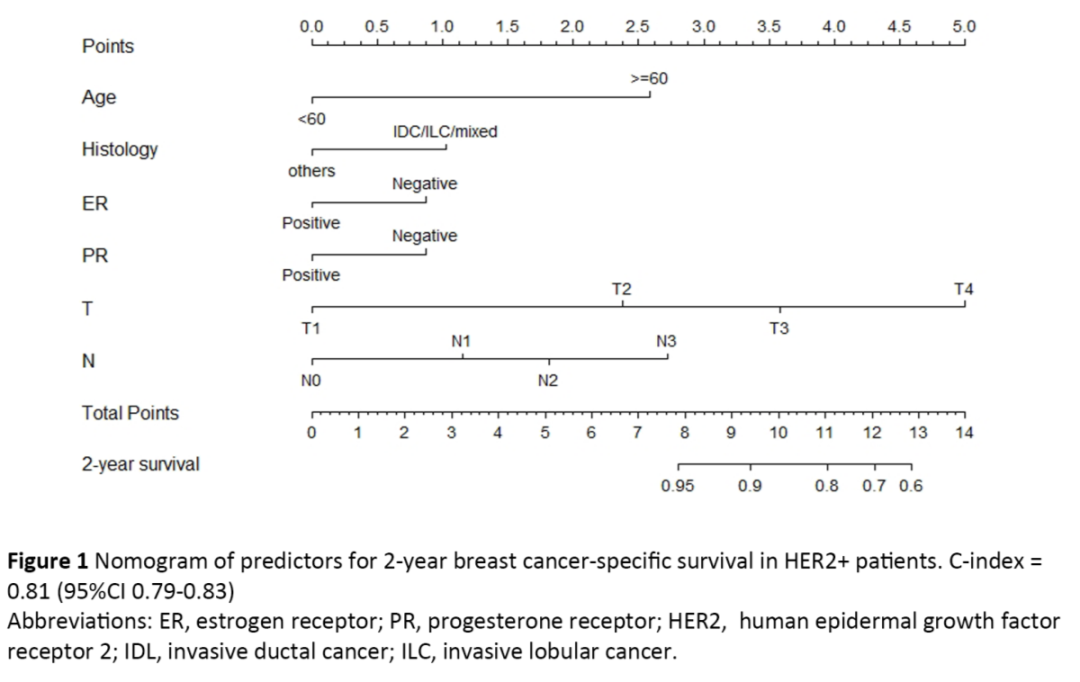 HER2阳性患者2年生存率的新型预后诺模图