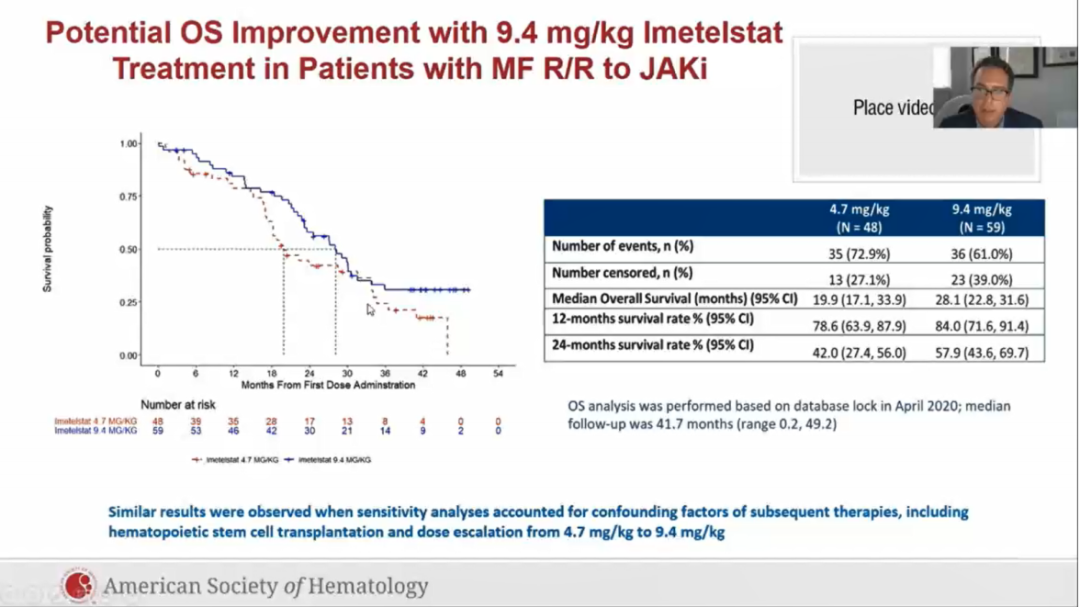 这些数据显示,在JAKi  R/R MF患者中,imetelstat可使OS出现剂量相关改善。与其他临床获益相关的趋势支持使用imetelstat观察到的潜在生存获益,值得进一步临床研究。