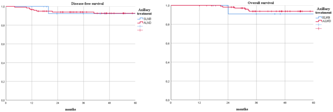 △NAC后,接受ALND或SLNB的患者的DFS和OS