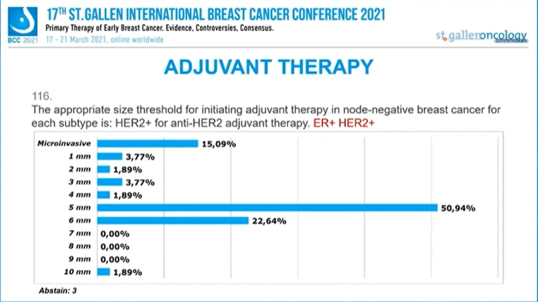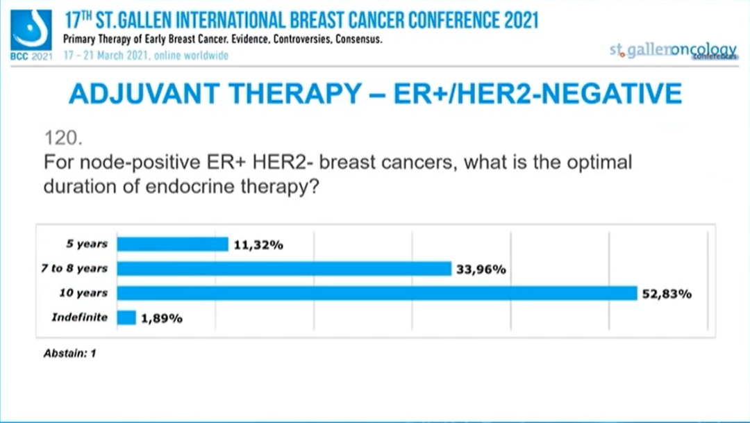 编者按:当地时间3月21日,在Eric Winer教授的主持下,第十七届圣加伦国际乳腺癌大会(SG-BCC 2021)的专家完成了投票,在早期乳腺癌系统治疗方面,昨天首场投票中已经讨论了新辅助治疗的策略,今天的讨论进一步总结“辅助治疗”,以及个亚型乳腺癌的辅助治疗策略。