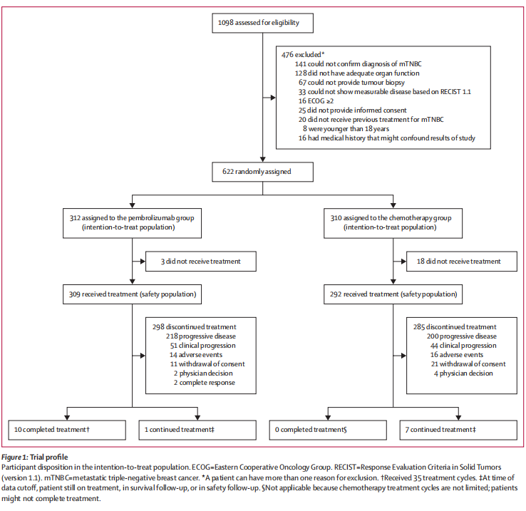 Winer, Eric P et al. “Pembrolizumab versus investigator-choice chemotherapy for metastatic triple-negative breast cancer (KEYNOTE-119): a randomised, open-label, phase 3 trial.” The Lancet. Oncology, S1470-2045(20)30754-3. 4 Mar. 2021, doi:10.1016/S1470-2045(20)30754-3