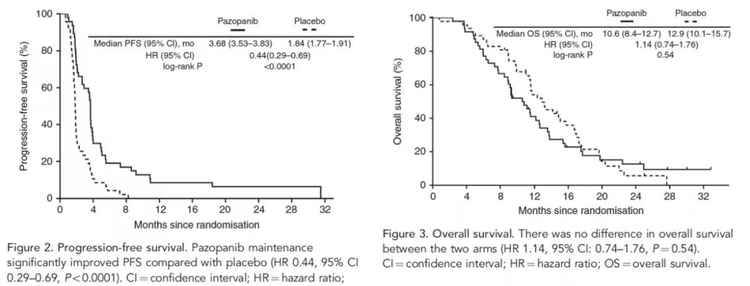 图6. 接受帕唑帕尼维持治疗的PFS及OS