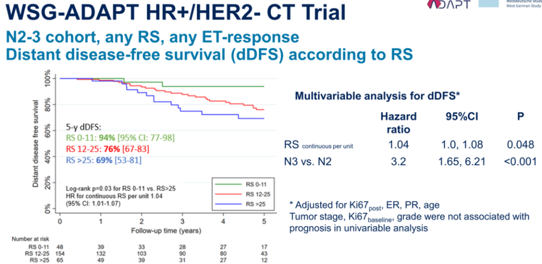 结论:大型前瞻性III期ADAPT试验的高危队列的初步结果为>4枚淋巴结阳性的某些患者(如低RS)提供了良好预后的证据。此外,即使在高RS评分患者中,较低的内分泌治疗后Ki-67以及局限的肿瘤负荷患者很可能成为降阶梯化疗的标准治疗人群。