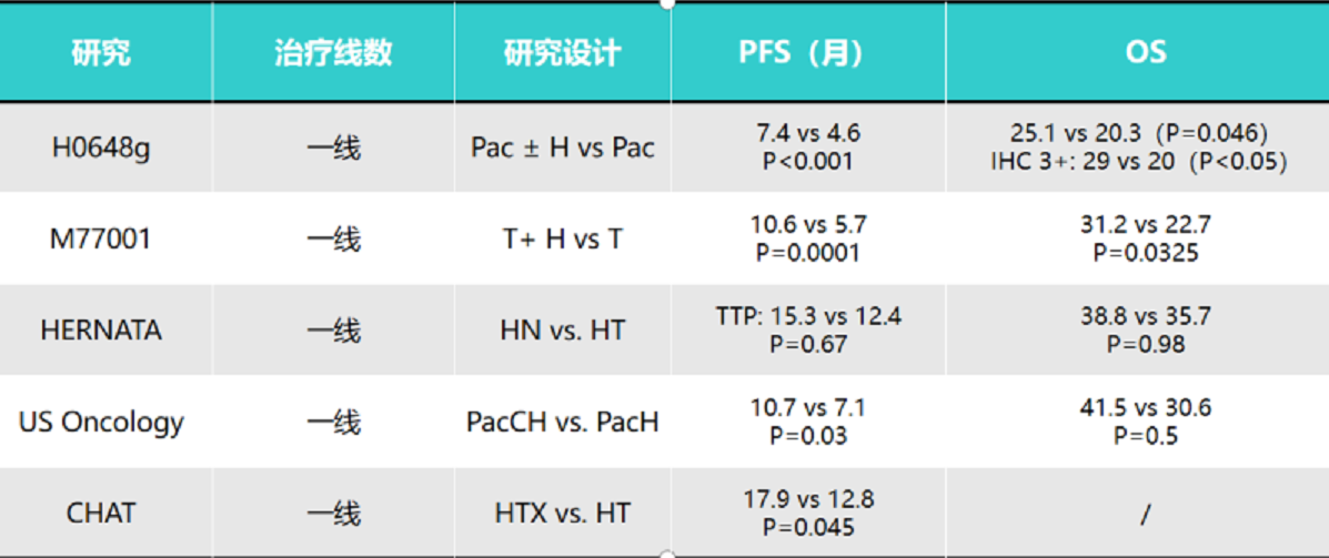Δ曲妥珠单抗单靶一线治疗的关键研究结果汇总