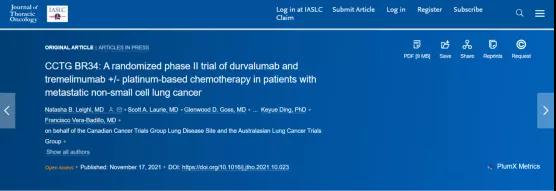 前言:CheckMate-227及CheakMate-9LA研究奠定了纳武单抗与伊匹木单抗联合或在此基础上联合短疗程化疗在突变阴性NSCLC患者的一线治疗地位。但是,后续很多针对这两个靶点的研究并未能重复出上述研究结果。近期,JTO杂志公布了II期BR34的研究数据,结果显示,另外两款针对PD-L1和CTLA-4的免疫检查点抑制剂——度伐利尤单抗联合Tremelimumab并进一步联合化疗组成的四药联合治疗方案,未能给患者带来获益。