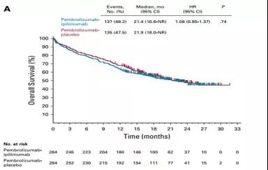 KeyNote-598研究:探索了帕博利珠单抗联合伊匹木单抗相较于帕博利珠单抗单药一线治疗晚期NSCLC患者的疗效及安全性。与CheckMate-227研究相比,该研究更加保守,因为该研究仅仅入组PD-L1≥50%的患者,但也遭遇了滑铁卢。这项III期临床研究共纳入568例患者,研究在中期分析时,因联合治疗未能带来获益而被提前关闭。数据显示,两组中位OS分别为21.4个月和21.9个月,HR=1.08,双免疫治疗甚至有更差的趋势;中位PFS分别为8.2个月和8.4个月,HR=1.06,两组3度及以上不良反应发生率分别为62.4%和50.2%。