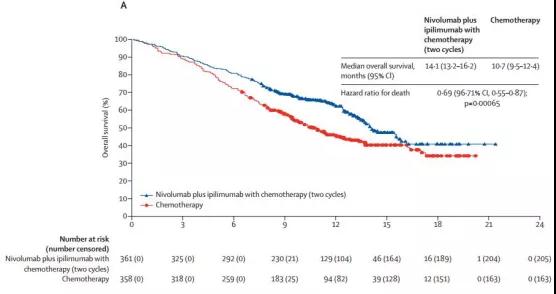 纳武单抗联合伊匹木单抗在PD-L1≥1%患者的OS数据
