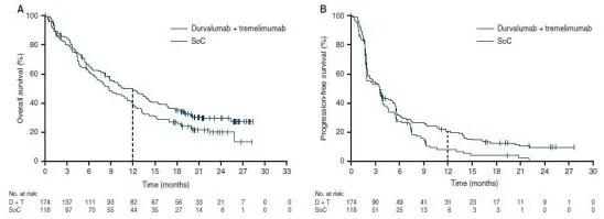 后线Durvalumab联合Tremelimumab vs. 化疗的PFS及OS