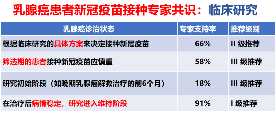 聂建云教授:在常态化疫情防控下,我们既要认真做好“抗癌”,也要坚持做好“抗疫”。首先,我们遵照国家、省卫健委及疫情防控部门提出的医院防疫措施,比如“三查一必问”(必查通行健康码行程码、体温、口罩佩戴情况,询问旅居史及是否有发热、咳嗽等新冠相关症状)。其次,在病房容量和病人流量方面的管控,在疫情以前我们的床位使用率经常是达到甚至超过100%的,但在疫情时期我们要按照规定保证一定的床位使用率,做到恰当的间隔,以及做到固定陪床人员等。第三是要控制门诊量,对于一些乳腺良性疾病,没有必要在疫情非常时期到医院就诊;对于病情稳定的乳腺癌患者,也可以适当延长复查、评估的间隔,非必要来院的情况,我们都会发布温馨提示,建议患者通过线上咨询平台获得医疗服务。第四是鼓励乳腺癌患者接种新冠疫苗,建立免疫屏障。《乳腺癌患者接种新冠疫苗中国专家共识》对初诊和手术患者、新辅助治疗患者、辅助治疗患者、复发转移患者以及参加临床研究的患者,均给出了相应的接种新冠疫苗建议。