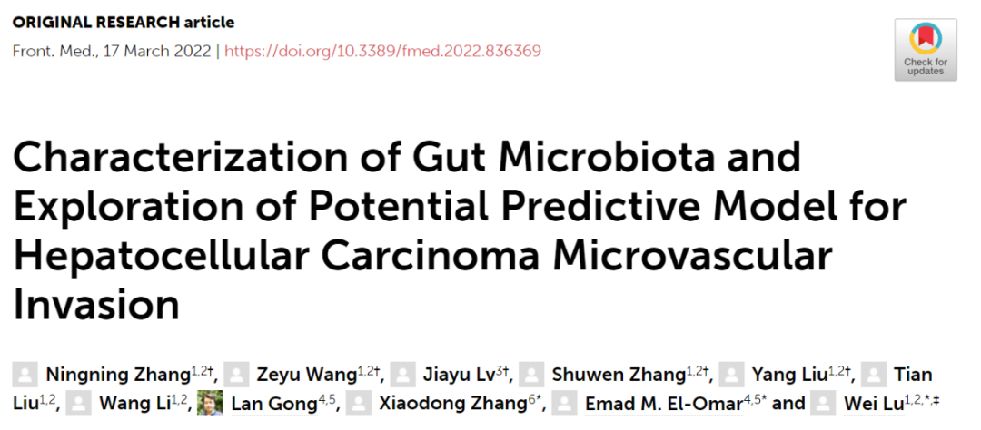 EASL中国之声丨陆伟教授团队:基于肠道微生物特征,预测肝癌潜在微血管侵犯风险
