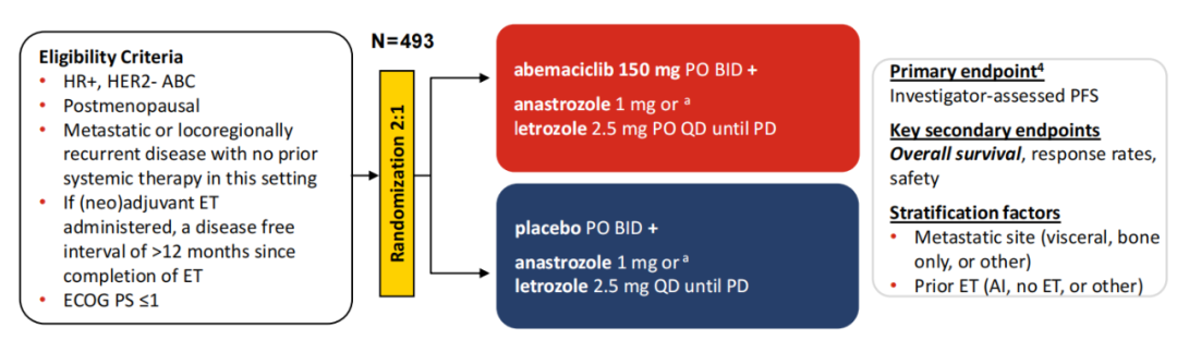 MONARCH 3研究中期总生存期(OS)结果:阿贝西利联合非甾体芳香化酶抑制剂(NSAI)治疗HR+/HER2-晚期乳腺癌(ABC)