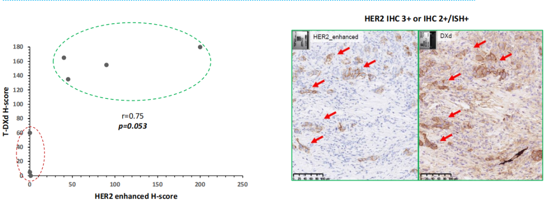 尽管HER2的表达随着T-DXd的治疗进展而下降,但没有强有力的证据表明T-DXd的摄取是发生耐药的主要机制。疾病进展时,在4/6例患者中观察到T-DXd分布,其中2例患者观察到HER2表达水平的下降。