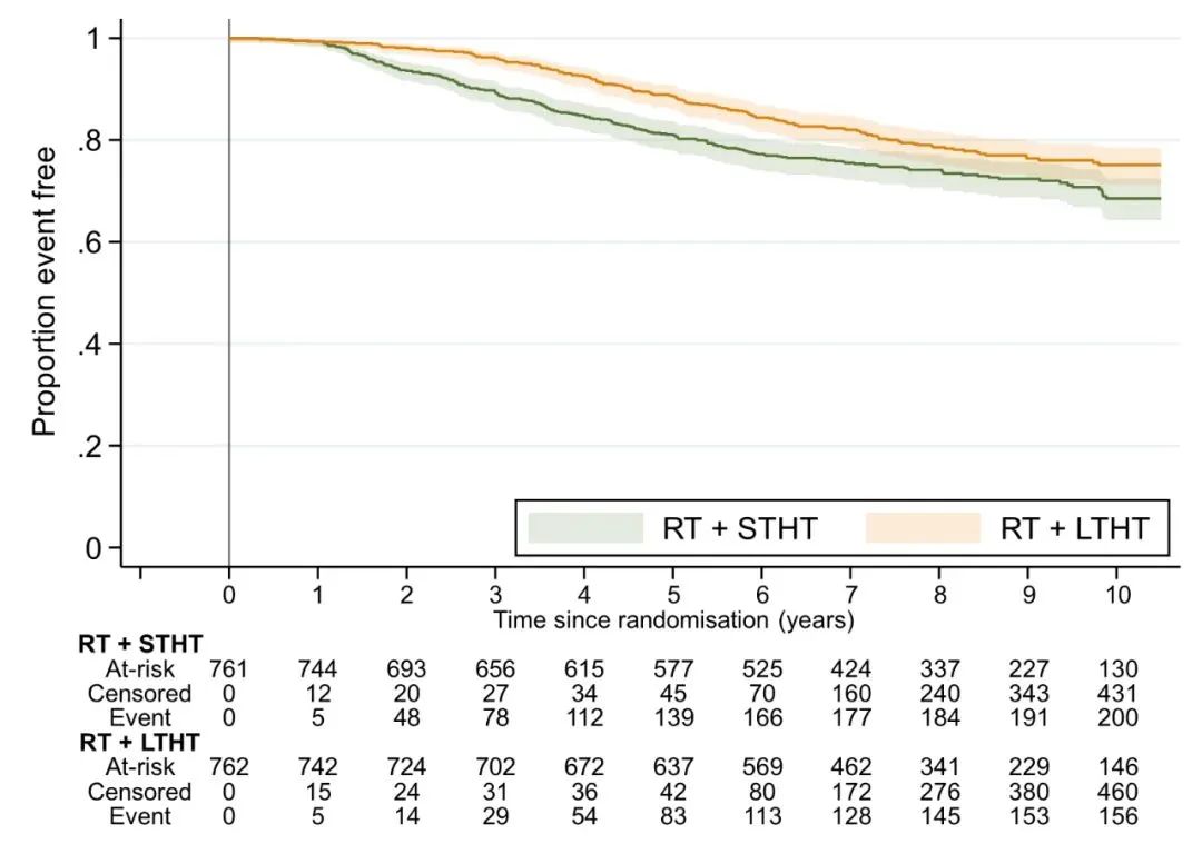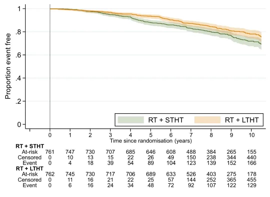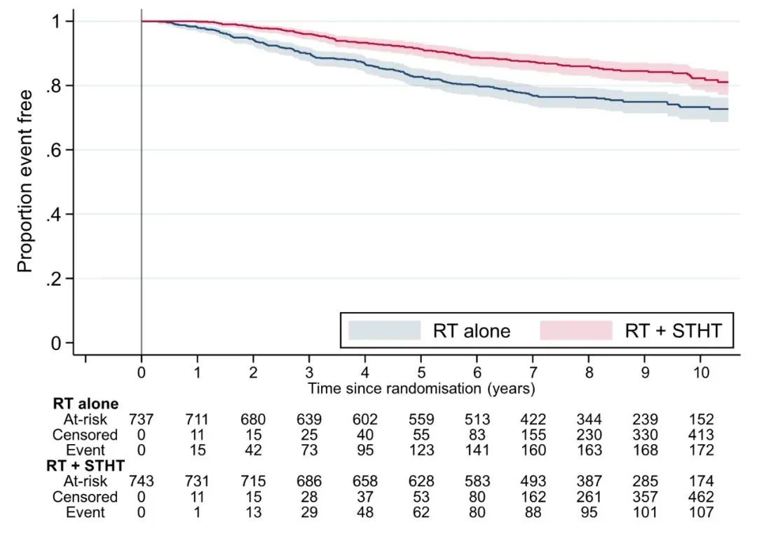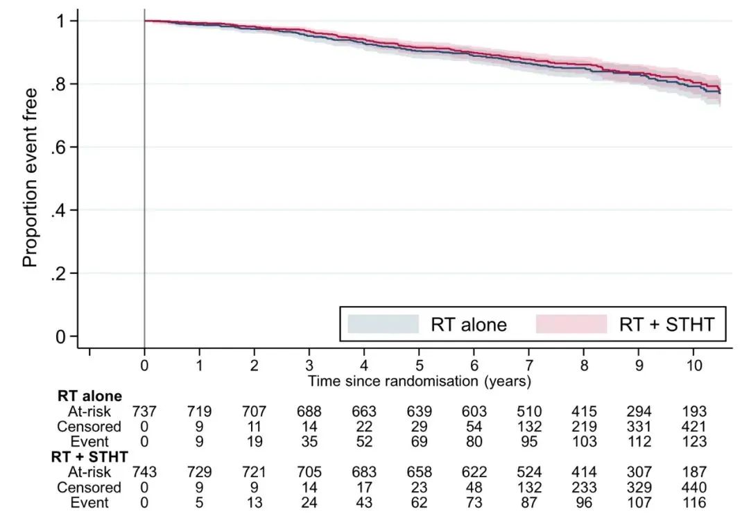 RADICALS-HD是RADICALS研究的一部分,是评估术后RT联合ADT的疗效和持续时间的随机对照研究。关键入组标准为RP后具备RT指征且术后未接受ADT治疗。RT前,患者随机分配至不联合ADT组(对照组)、6个月ADT组(短程组)和24个月ADT组(长程组),进行两两比较。主要疗效指标为无转移生存期(MFS)。次要指标为至挽救性ADT的时间和总生存期(OS)。安全性主要关注以RTOG标准评估的RT毒性。