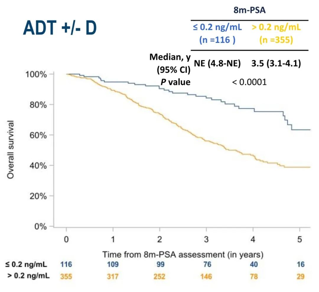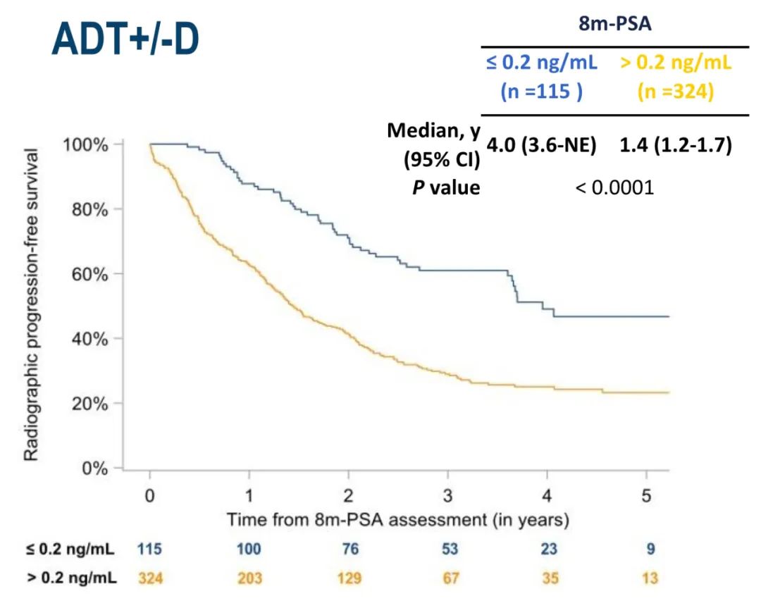 PEACE-1研究中8个月的PSA值可强烈预测mCSPC患者的rPFS和OS,应进一步研究对8个月时PSA值不理想的患者进行早期治疗干预。