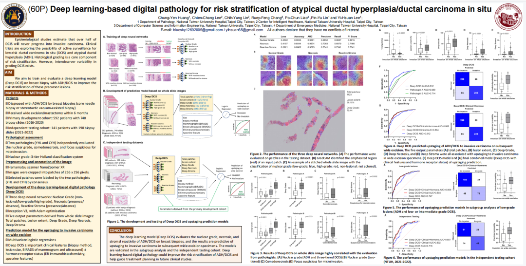 编者按:2023年欧洲肿瘤内科学会乳腺癌年会(ESMO BC)将于当地时间5月11日至13日在德国柏林召开。台湾大学医学院Chung-Yen Huang教授介绍了其团队开发的评估ADH/DCIS乳腺活检的深度学习模型相关摘要以大会壁报的形式被收录(66P),肿瘤瞭望特邀采访了Chung-Yen Huang教授。