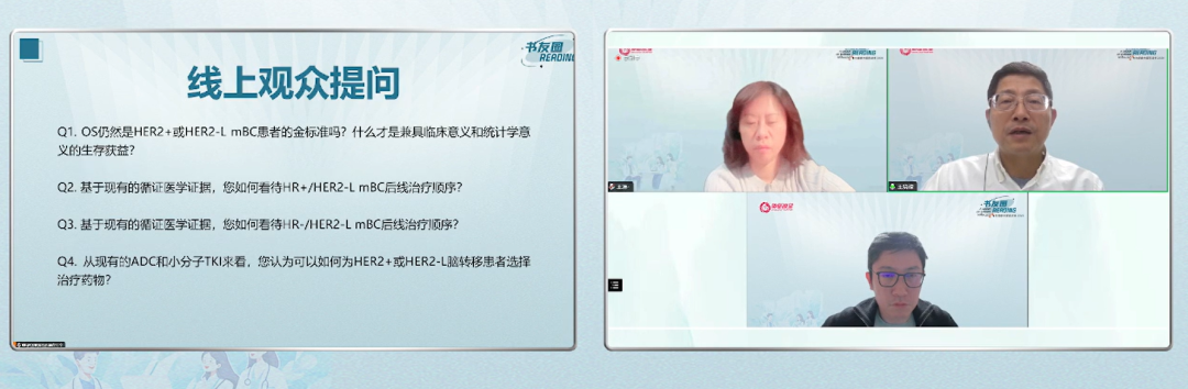 两位专家讲课结束后,在王晓稼教授的主持下,三位专家共同就乳腺癌患者治疗的热点话题进行了讨论。