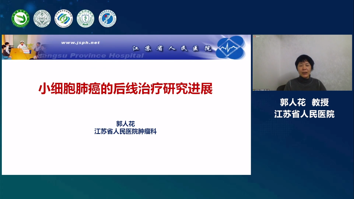 徐州医科大学附属医院韩正祥教授邀请江苏省人民医院郭人花教授开展专题报告《小细胞肺癌的后线治疗研究进展》。郭人花教授结合国内外对小细胞肺癌二线及后线治疗的经典研究结果,重点介绍了ADC、新型免疫药物、PARPi以及联合治疗方案。