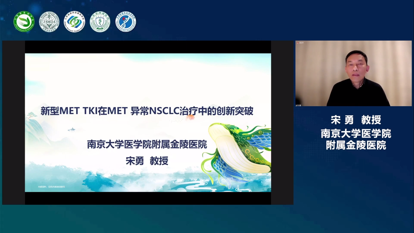江苏省肿瘤医院陈凌翔教授邀请南京大学医学院附属金陵医院宋勇教授开展专题报告《新型MET TKI在MET异常NSCLC治疗中的创新突破》。宋勇教授分别从MET异常可引发多类型肿瘤、MET异常与肺癌、METex14跳突肺癌诊疗进展及MET扩增/过表达肺癌诊疗进展四个方面深入浅出地分析了对罕见靶点MET研究目前取得的成果及未来研发方向。