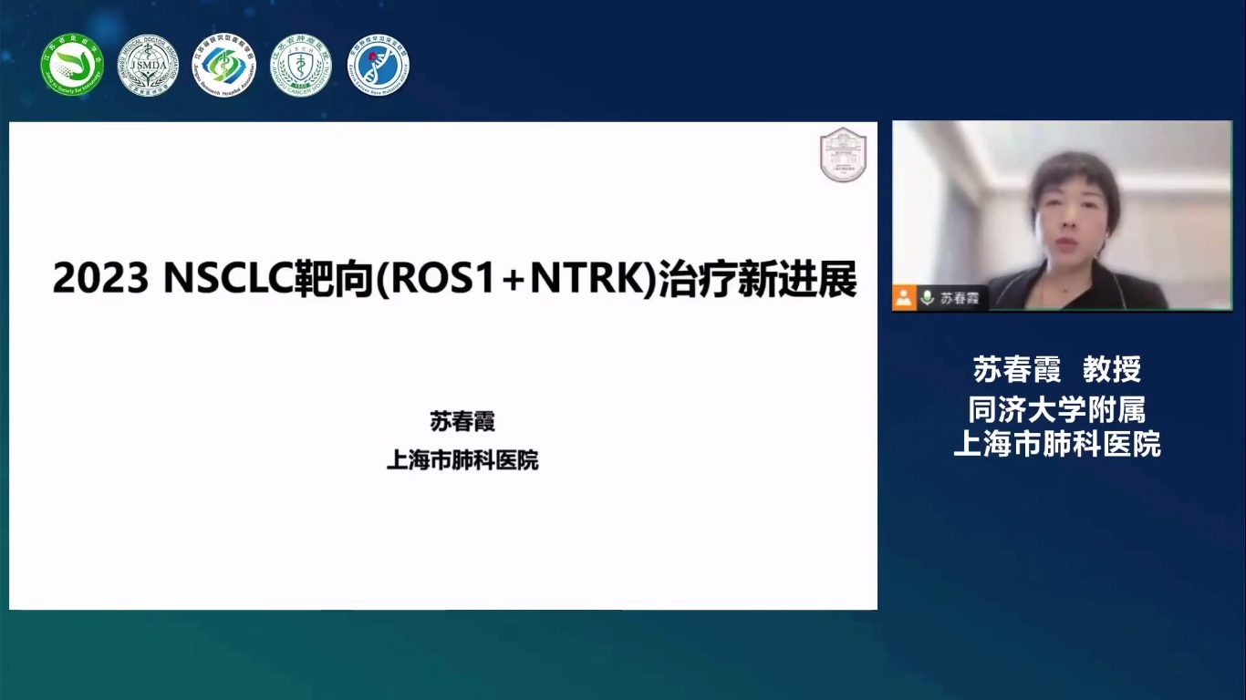 江苏省肿瘤医院王丽教授邀请同济大学附属上海市肺科医院苏春霞教授开展专题报告《2023 NSCLC靶向(ROS1+NTRK)治疗新进展》。苏春霞教授首先提出了检测技术和药物研发的创新和突破改变了罕见靶点的诊疗路径;未来需要进一步结合患者和疾病特征选择适宜的检测策略,并规范罕见靶点诊疗路径。