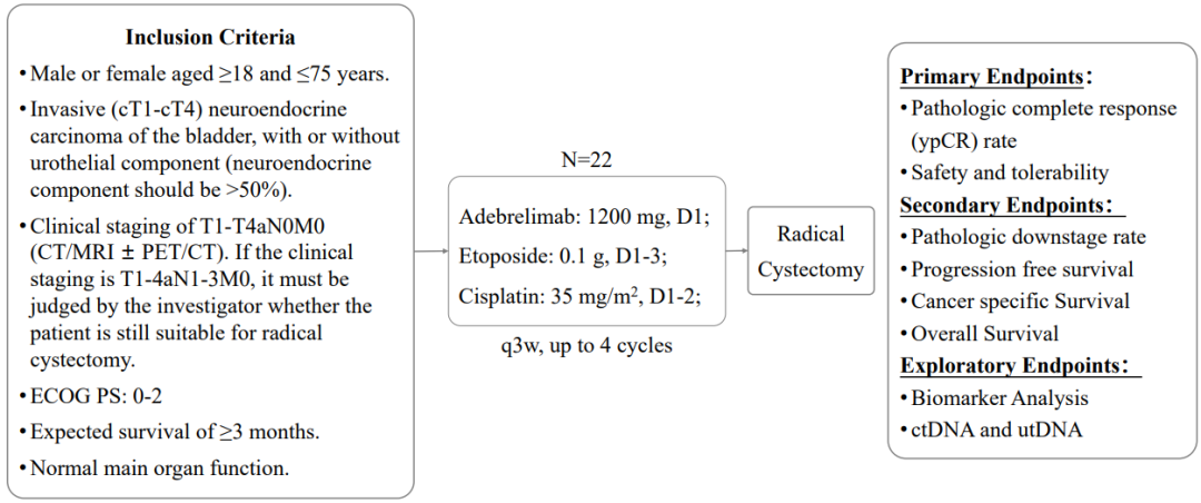 RJBLC-NEBC001研究:一项考察新辅助阿得贝利单抗联合依托泊苷与顺铂治疗膀胱神经内分泌癌的前瞻性、单臂临床研究