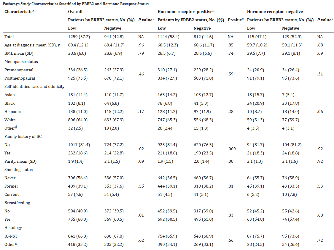 JAMA子刊 |ERBB2低表达乳腺癌的临床、流行病学和病理学意义