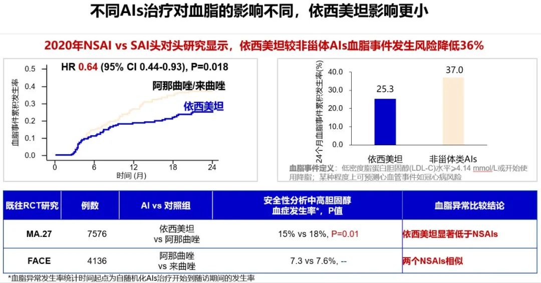 NSAI vs SAI头对头研究、MA.27和FACE研究中血脂事件[19,20,21]